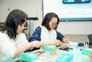 在“言香知性”环节,橘子老师以“神奇的树”为主题,生动介绍了从果实、叶片、花朵到树干、根茎等不同类别的植物精油的特性和效用,让大家对精油的多元世界有了更系统的认识,领略了植物王国的奇妙馈赠。“抹香践行”环节将活动中,老师将精油耳疗与中医养生理念相结合,演示了实用的耳部保养方法。随后,在老师的共同带领下,大家热情投入到口红DIY与肩颈按摩手法的学习中。亲手制作专属口红的乐趣,与相互练习、即刻能用的放松技巧,让老师们在创造与互动中收获了实用的自我关怀技能。