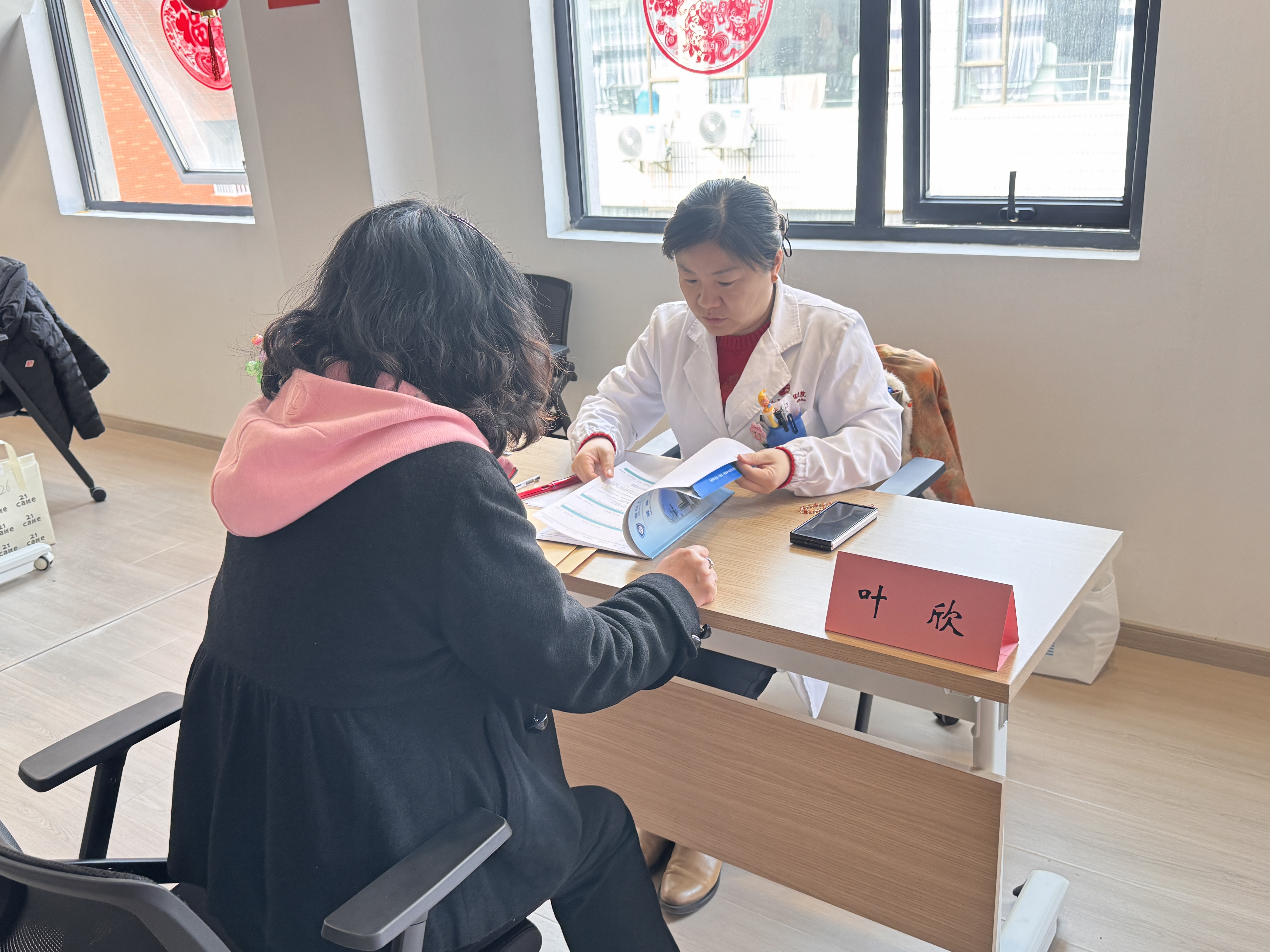 活动现场,三位专家结合各自专业领域,耐心细致地为前来咨询的女教职工答疑解惑。刘璟蓝副主任医师长期从事妇科常见良性疾病的微创治疗及长期管理,针对子宫肌瘤、子宫内膜异位症、子宫腺肌病等困扰女性健康的常见问题,给出了专业的诊疗建议和日常保健指导。叶欣副主任医师专注于乳腺良恶性肿瘤的诊疗,尤其在妊娠期乳腺癌、年轻乳腺癌生育力保存等方面经验丰富,她为咨询者普及了乳腺自查、早期筛查的重要性,并解答了关于遗传性乳腺癌的疑问。杨华主任作为内分泌科专家,擅长甲状腺疾病、糖尿病及其并发症的中西医结合诊治,她为师生们提供了有关代谢性疾病预防、营养运动等方面的科学建议,帮助大家树立“未病先防”的健康理念。