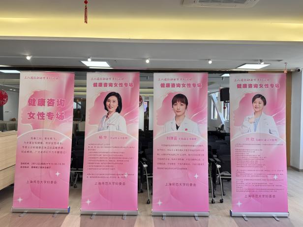 为关爱女教职工身心健康,3月12日下午,由校妇委会主办的专家义诊与健康咨询女性专场活动在徐汇校区香樟苑三楼多功能厅温馨举行。活动特邀中国福利会国际和平妇幼保健院妇科副主任医师刘璟蓝、乳腺科副主任医师叶欣,以及上海中医药大学附属龙华医院内分泌科主任杨华三位专家坐诊,校医院也在现场科普健康知识,吸引了众多女教职工前来咨询。