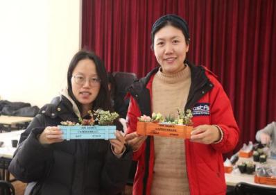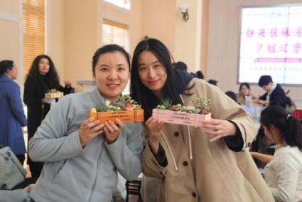 旅游学院则组织女教工开展了多肉盆景DIY主题活动。老师们变身“春日设计师”,将形态各异的多肉植物与精致摆件巧妙组合,在方寸花盆中打造出一个个妙趣横生的“掌心花园”,在绿意盎然中舒缓工作压力,感受自然之美。