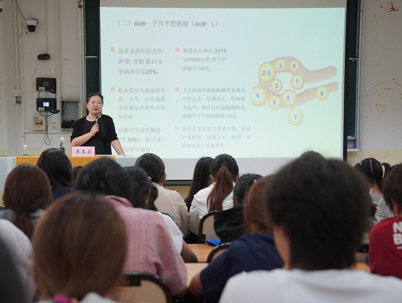 讲座中,李主任结合丰富的临床经验,系统讲解了月经的生理机制、异常子宫出血的识别与处理、痛经的分类与应对策略,以及HPV感染与宫颈癌的防治知识。她通过生动的案例、直观的图表和详实的数据,帮助同学们破除误区、树立正确的健康观念,并介绍了科学的自我管理方法和就医指导。在互动环节,同学们积极提问,讲座结束同学们排起了长队,面对面咨询,李主任一一耐心解答,现场氛围轻松而充满信任。