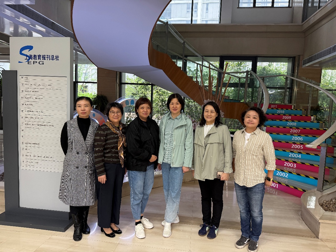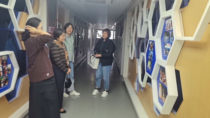 随后,调研团队参观了上海教育报刊总社大楼。从知识沉淀的图书馆到活力迸发的科创空间,从记录成长的编辑部到疗愈身心的多功能锻炼室,每一处区域都承载着 “服务教育、滋养成长” 的初心。在青少年科技创新研究院人工智能科创素养中心感受到了 “科技与教育融合” 的魅力。该中心分为 AI 教学体验区、科创作品展示区、编程实践区三大功能空间,同时引入了适合不同年龄段学生的 AI 教育课程体系,从基础的编程入门到高阶的机器人创意设计,覆盖小学至高中阶段。在《少年日报》编辑部及上海青少年媒介素养实践体验中心,近距离观摩了报刊采编流程,体验了数字化小报制作设备,对总社在青少年教育传播与媒介素养培育中的创新实践表示赞赏。张红英在交流中表示,校妇委会联手心理学院正推进 “赋能申师、智创未来” 家庭成长计划,总社在家庭教育宣传、亲子阅读推广等方面的资源优势,为双方未来合作提供了广阔空间。