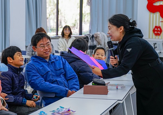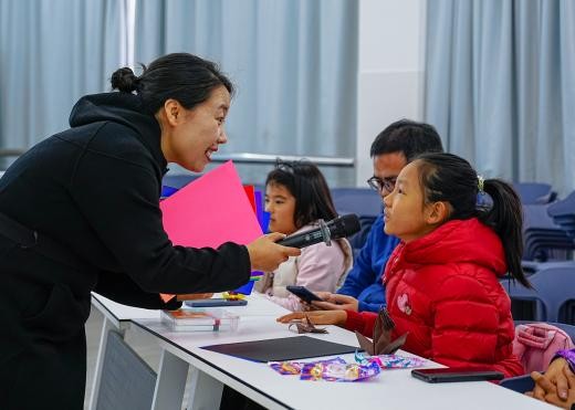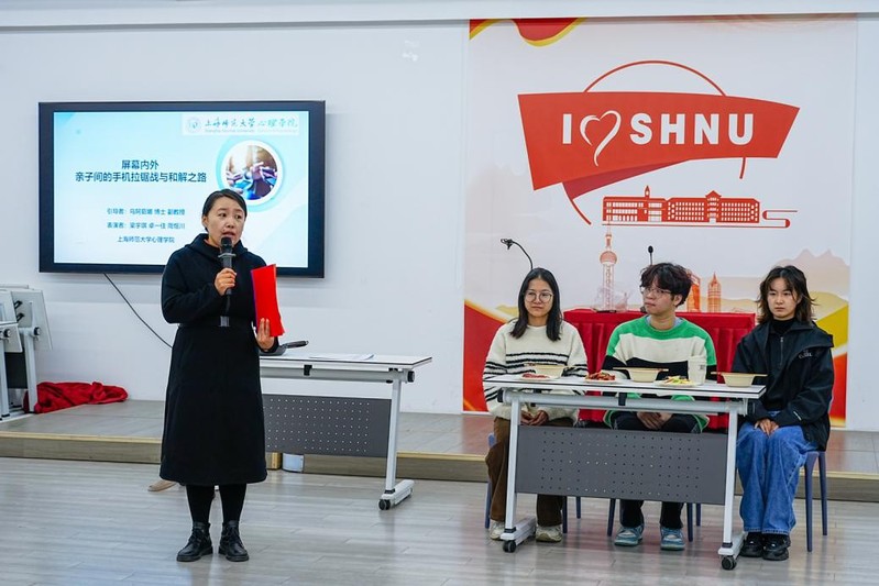 2025年11月29日上午,上海师范大学东部园区党建服务中心内,一场以“屏幕内外”为主题的家庭手机使用亲子工作坊温馨举行。多组家庭在丁雪辰教授的专题讲座与乌阿茹娜副教授的沉浸式心理剧中,共同探寻数字时代的亲子相处之道。活动伊始,丁雪辰教授的讲座为家庭提供了一份全面的“解惑指南”。他从当前儿童网络使用现状入手,深入剖析了过度使用可能带来的注意力分散、睡眠障碍等问题,并揭示了游戏吸引孩子的深层心理机制—匿名性、即时反馈和成就感。现场,一位小朋友关于“游戏能提供充分的情感价值”的分享,恰好印证了数字世界对孩子情感需求的满足。